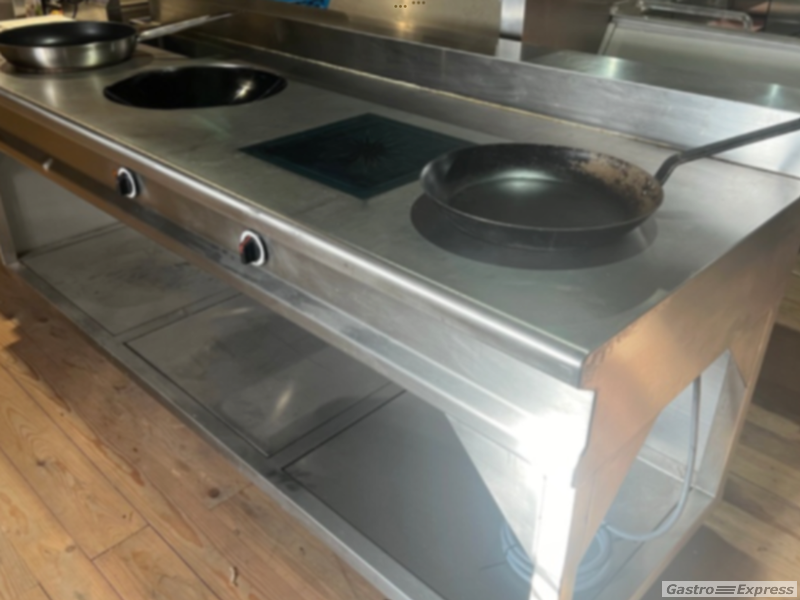 Sehr leistungsstarker, absolut neuwertiger, mobiler Induktionsherd mit professionellem, grossem Wok mit 8 kW sowie professioneller-kräftiger Bratplatte