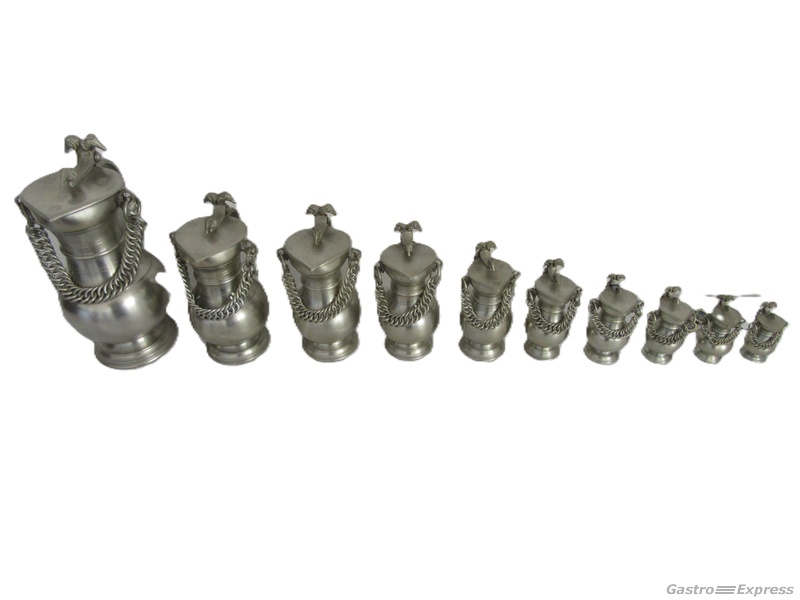 10 Stk. originale Walliser Zinnkannen, mit Kette, schwere Ausführung