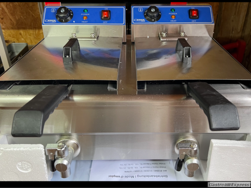 Leistungsstarke Doppelfriteuse mit Oelablass 2 x 10 lt. in absolut neuwertigem